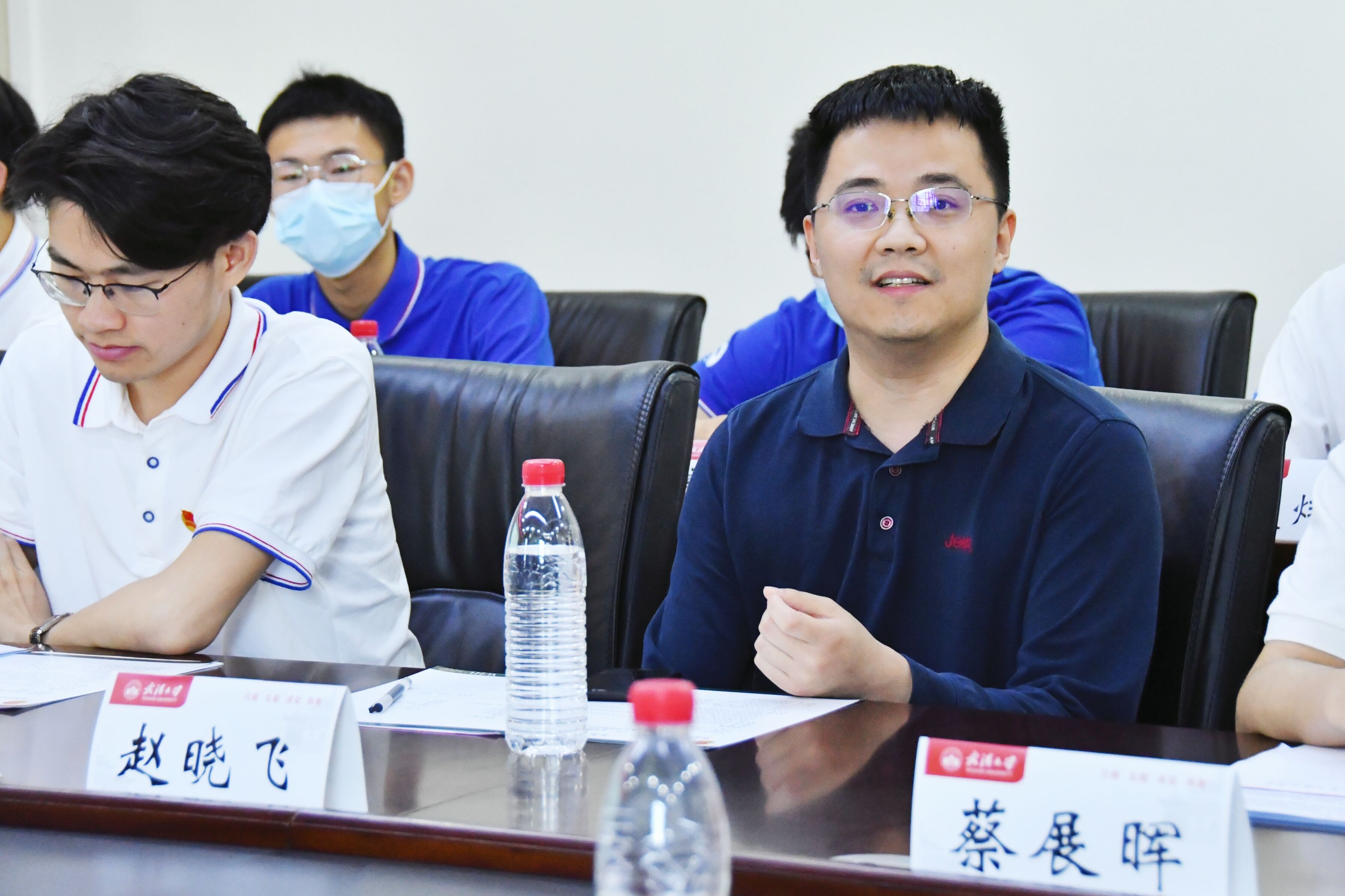 湖北省学联主席、2021 级硕士生蔡展晖分享其参加“大学生志愿服务西部计划”的经历和心得,表示勇担时代重任,不负韶华努力进取。