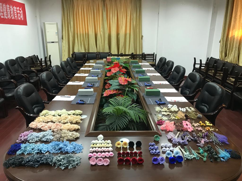 所有准备工作已经就绪,好戏正式开场!在方老师的带领之下,同学们首先将工作台上面准备好的花泥切割成合适的大小放入自己挑选的花盒之中,并用胶枪将花泥粘贴固定,至此,完美的底座便完成啦。接着,方老师示范了玫瑰花的两种制固定方法,以及如何固定花盒中的标配——绣球花。在同学们制作永生花盒的过程中,方老师一直在提供帮助,不仅随时解答他们的疑问,而且不断地提醒同学们要小心操作不要受伤。经过三个半小时的努力,每个人都制作出了自己专属的永生花盒!